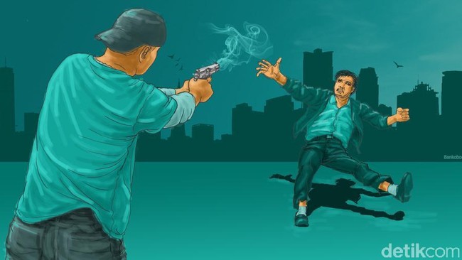 Pelaku menembak korban dari jarak sekitar 3 meter saat hendak kabur dengan sepeda motor. Tembakan kedua ditujukan ke rumah warga.